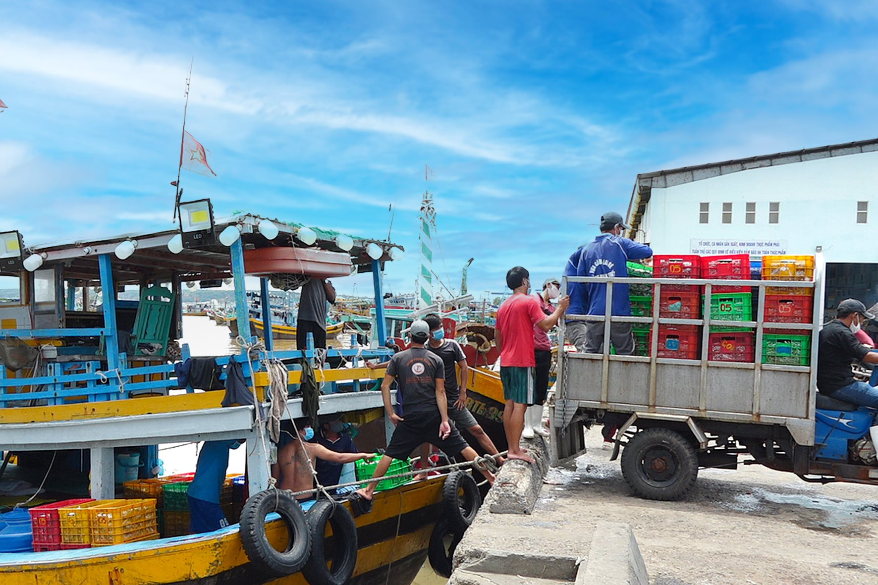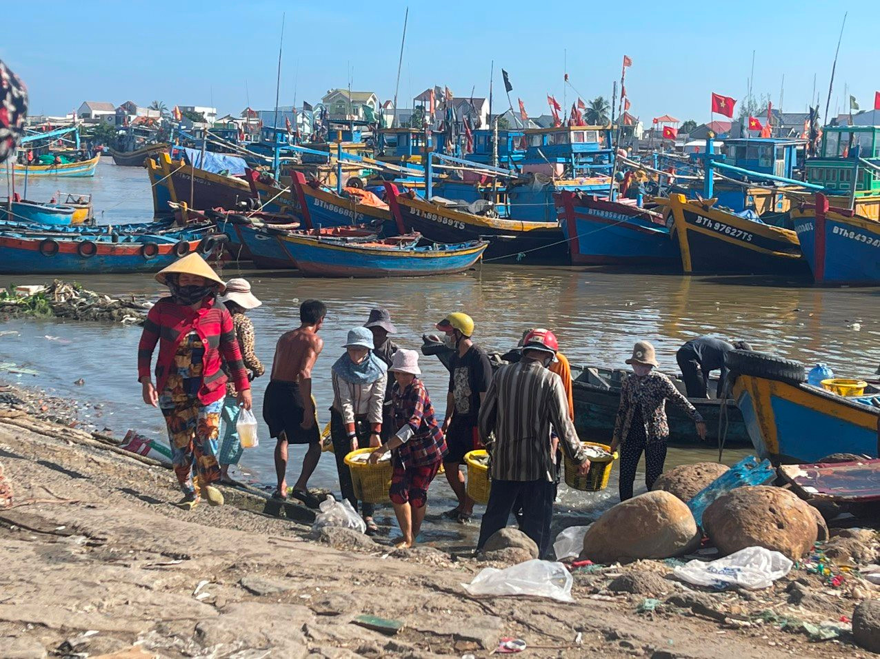 Tại cảng Phan Rí Cửa, một số tàu cá vận chuyển sản phẩm vào cảng bằng thúng chai, xuồng nên khó khăn trong thu nhận nhật ký, giám sát sản lượng