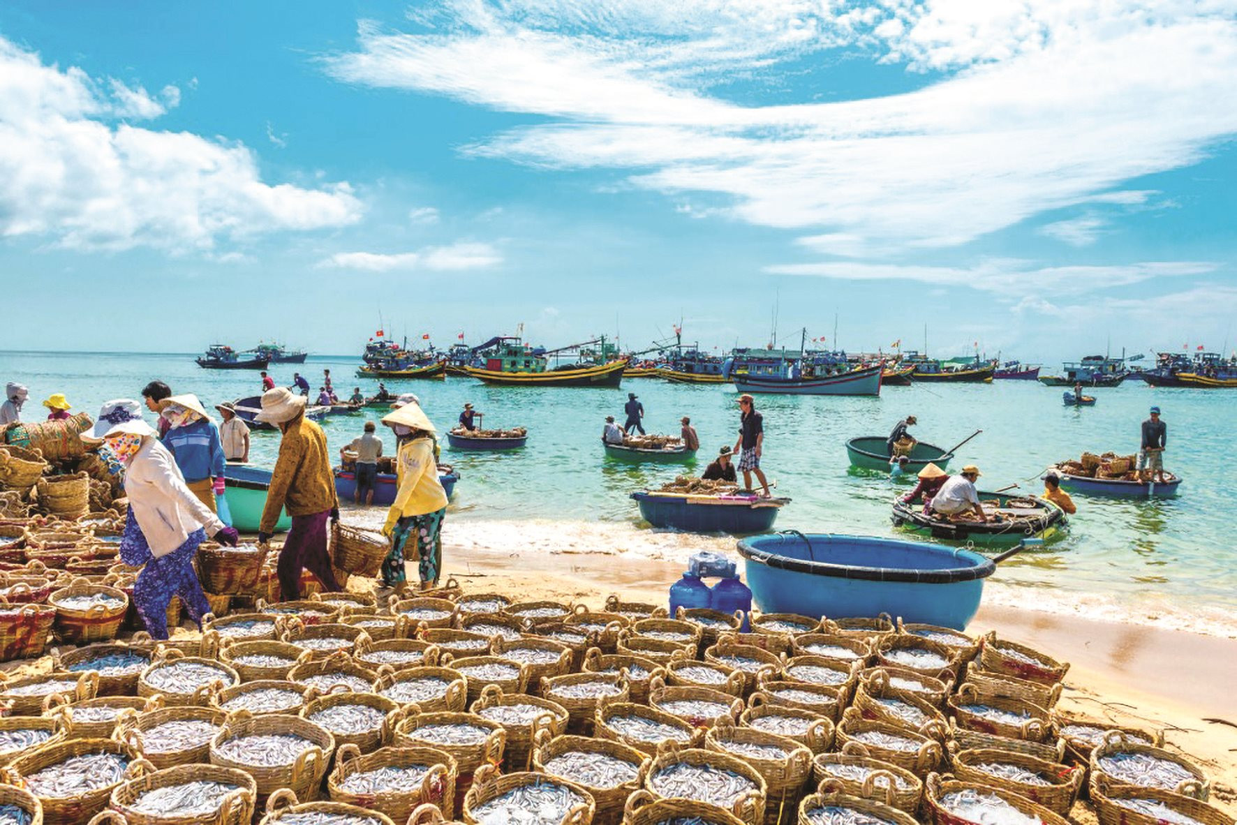 Tôi thích cái không khí buổi sáng ở cảng cá. Khi mặt trời vừa mới ló dạng phía xa xa, chiếu những tia nắng đầu tiên của ngày xuống mặt nước. Nước lấp lánh hàng ngàn viên kim cương lóng lánh. Những con thuyền lớn neo đậu phía xa xa cửa sông, ngư dân dùng thúng nhỏ bơi vào bờ, đưa những sọt cá óng ánh cho người trên bờ kéo lên. Tiếng người cười nói, tiếng gọi nhau í ới, tiếng máy xay đá rầm rập để chuẩn bị cho mấy thuyền lớn ra khơi, tiếng rao “ai đồ ăn sáng đi” của mấy người bán hàng rong… Đủ thứ âm thanh hợp lại với nhau tạo nên cái không khí đặc biệt riêng chỉ nơi đây mới có. Cũng là thứ thanh âm ồn ào náo nhiệt nhưng lại khác hẳn thứ ồn ào của phố thị. Cái ồn ào nơi đây khởi đầu cho sự sống, cho những bữa ăn ngon, cho những niềm hy vọng của ngư dân về một chuyến ra khơi đầy ắp hàng về.