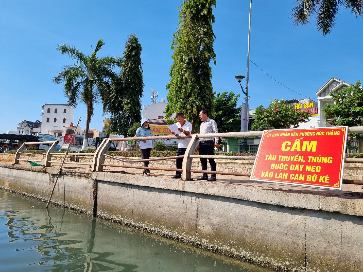 Trước tình trạng này, phường Đức Thắng đã cho lắp đặt biển cấm để nhắc nhở các chủ tàu thuyền phải thực hiện buộc dây neo đúng quy định. Đồng thời, gửi thông báo đến các chủ tàu tuyền phải chấp hành nghiêm.